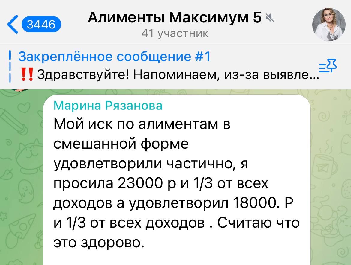 Групповая консультация Ольги с ответами на все ваши вопросы по алиментам;